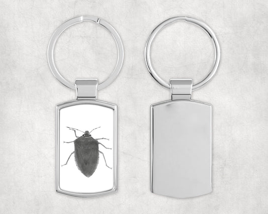 Green Shield Bug Metal Rectangular Keyring – Entomological Insect Gift for Nature & Wildlife Enthusiasts