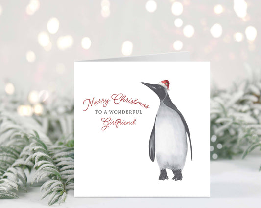 Merry Christmas To A Wonderful Girlfriend Festive Penguin Christmas Card