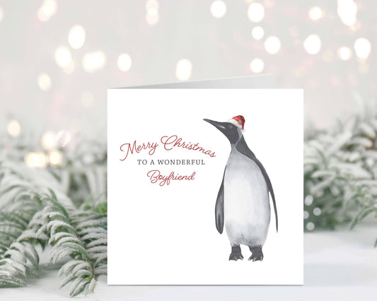 Merry Christmas To A Wonderful Boyfriend Festive Penguin Christmas Card