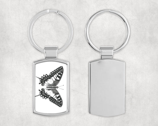 Old World Swallowtail Butterfly Metal Rectangular Keyring – Elegant Entomological Insect Gift for Nature Lovers