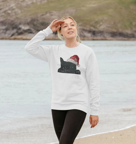 Woman's Crew Neck Festive Cat Sweater Certified Organic Cotton