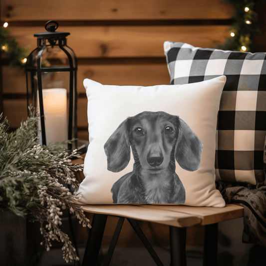Faux Suede Dachshund Cushion – Hand-Drawn Dog Lover Home Décor