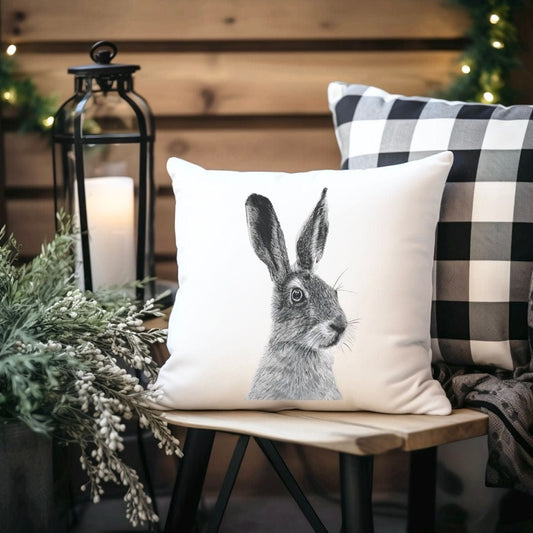 Faux Suede Boxing Hare Cushion – Hand-Drawn Countryside Wildlife Home Décor
