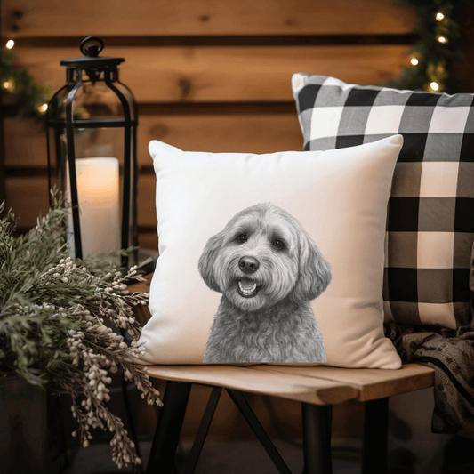 Faux Suede Cockerpoo Cushion – Hand-Drawn Dog Lover Home Décor