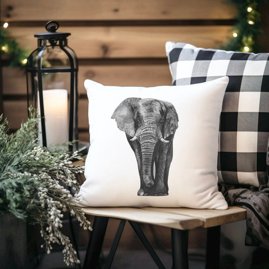 Faux Suede Elephant Cushion – Hand-Drawn Wildlife Home Décor Gift