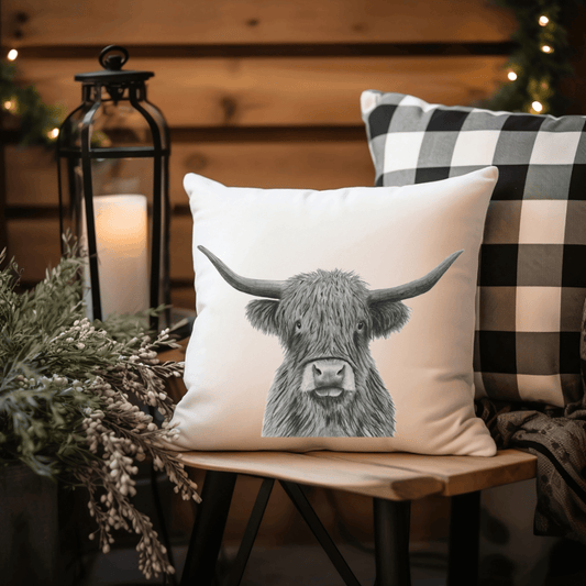 Faux Suede Highland Cow Cushion – Scottish Wildlife Home Décor Gift