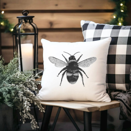 Faux Suede Bee Cushion – Hand-Drawn Insect Home Décor Gift