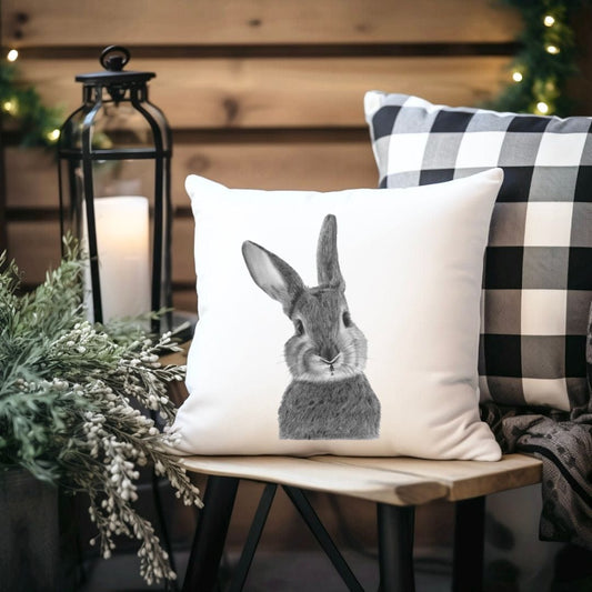 Faux Suede Bunny Cushion – Hand-Drawn Countryside Animal Home Décor Gift