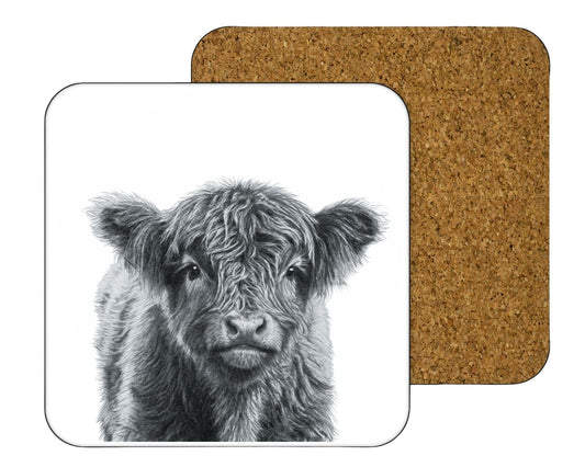 Corvus Highland Coo Drinks Coaster – Hand-Drawn Highland Cow Gift