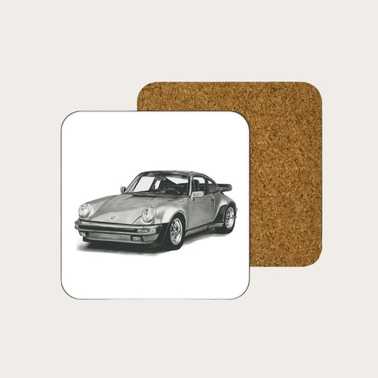 German Sports Car Porsche Inspired Drinks Coaster – Sleek Hand Drawn Automotive Art
