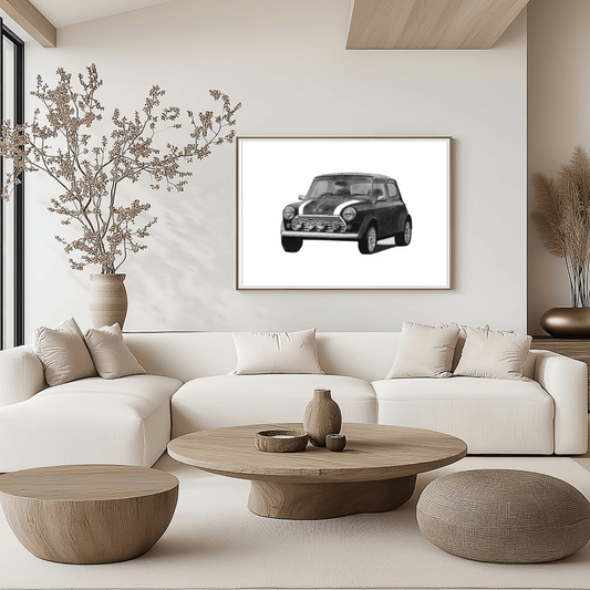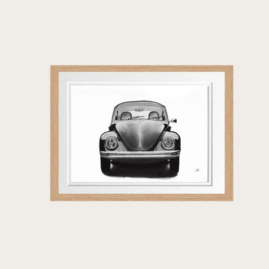 Classic Beetle Car Fine Art Print – Hand-Drawn Vintage Car Illustration