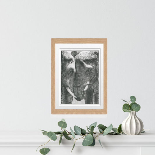 Elephant Tenderness Fine Art Print – Stunning Hand-Drawn Wildlife Artwork for Nature Lovers
