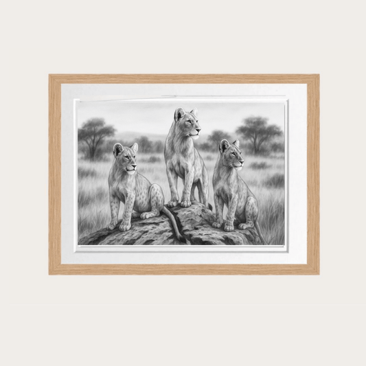 Three Lionesses Drawing | Wildlife Art from Zambia