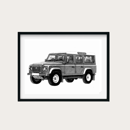 Land Rover Countryside Art Print | Hand-Drawn Automotive & Rural Scene