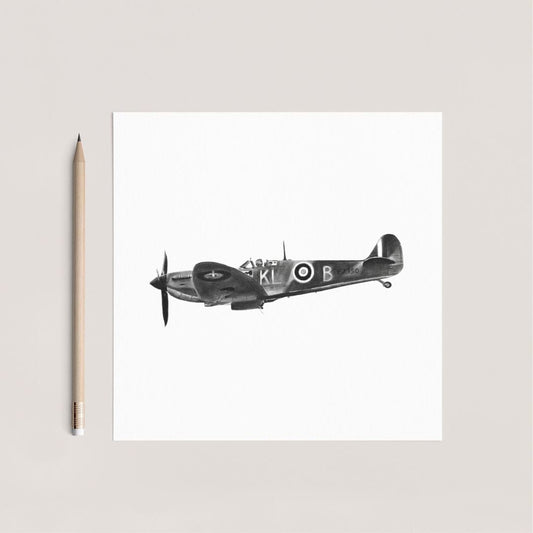 Flying Spitfire Hand-Drawn Greeting Card – Iconic WWII Aircraft Illustration