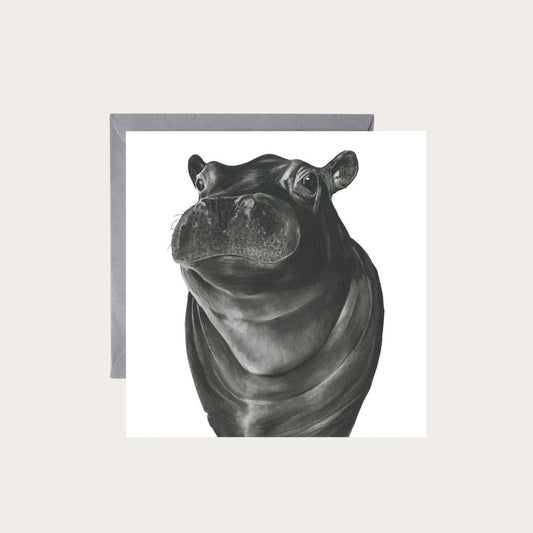 Carina the Hippo Hand-Drawn Greeting Card – Wildlife Art Card