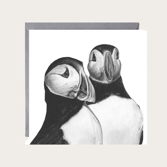 Gemini the Puffins Hand Drawn Wildlife Greeting Card