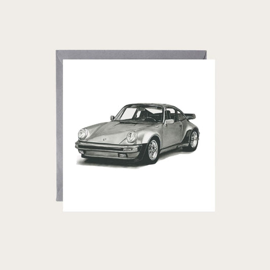 Classic German Sports Car Hand-Drawn Greeting Card – Porsche Edition